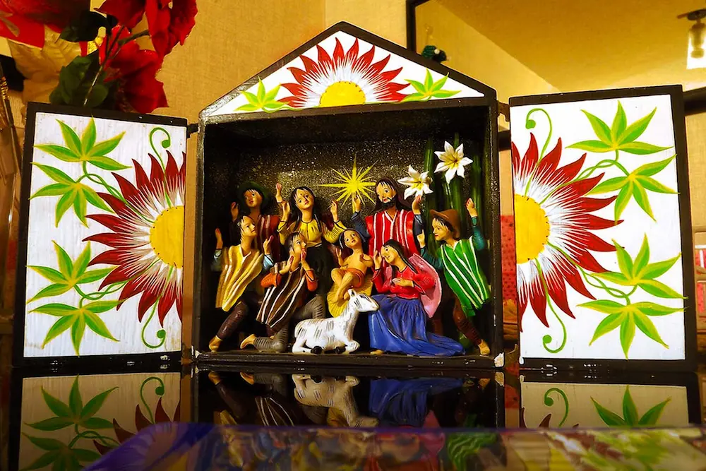Retablos are colorful wooden boxes filled with small figurines that represent traditional scenes from Andean life. They often depict festivals, markets, or religious celebrations and are considered unique pieces of folk art.
