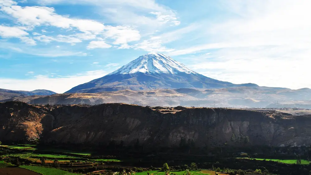 The Misti is one of Peru’s most iconic volcanoes and a symbol of Arequipa. Travelers choose it because it’s an accessible volcano that can be climbed in just two days without highly technical gear. From the summit, visitors can see the city of Arequipa, the desert, the Chili River valley, and the Chachani volcano.