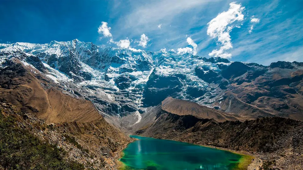Salkantay is one of the most visited mountains in Peru because it forms part of the famous Salkantay Trek to Machu Picchu, one of the country’s most complete trekking routes. The journey offers highly diverse scenery: snowy peaks, green valleys, crystal waterfalls, and humid cloud forest full of vegetation.
