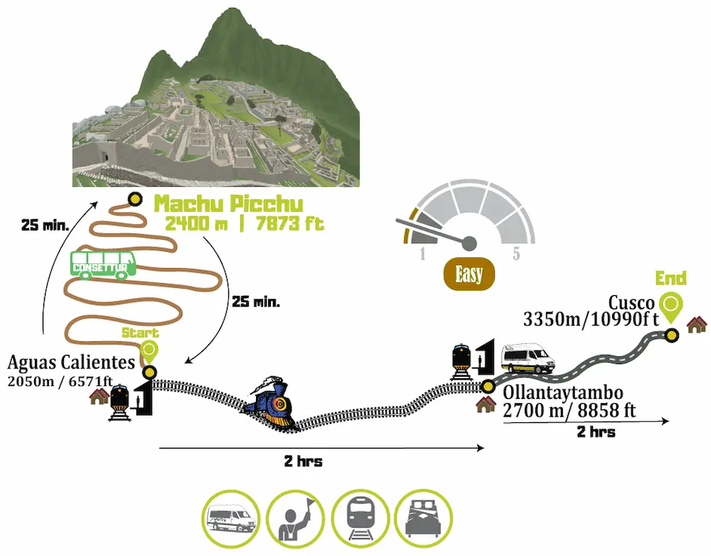 In the afternoon, we board one of the magnificent scenic trains for our journey home. This is more than just transport; the trains to Machu Picchu are an experience in themselves. In Ollantaytambo, our private driver will be waiting to provide a seamless transfer back to your hotel in Cusco, the Imperial City, arriving around 7:00 PM, your head and heart full of lifelong memories.